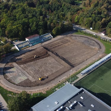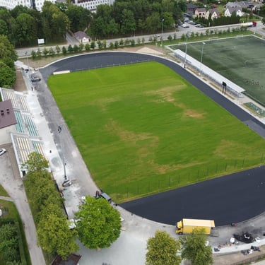 KRETINGOS Pranciškonų gimnazijos - stadiono statymo pabaiga.